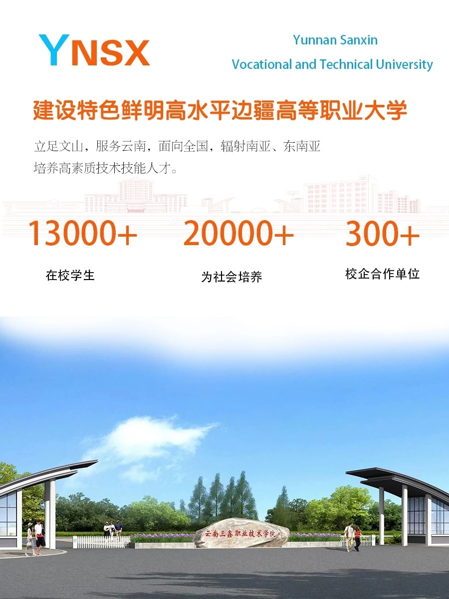 云南三鑫職業(yè)技術(shù)學(xué)院:是經(jīng)云南省人民政府批準(zhǔn),國家教育部核準(zhǔn)備案,國家計(jì)劃內(nèi)統(tǒng)一招生,具有獨(dú)立頒發(fā)國家承認(rèn)學(xué)歷文憑資格的全日制高等職業(yè)院校。學(xué)校堅(jiān)持社會(huì)主義辦學(xué)方向,確立“求正...