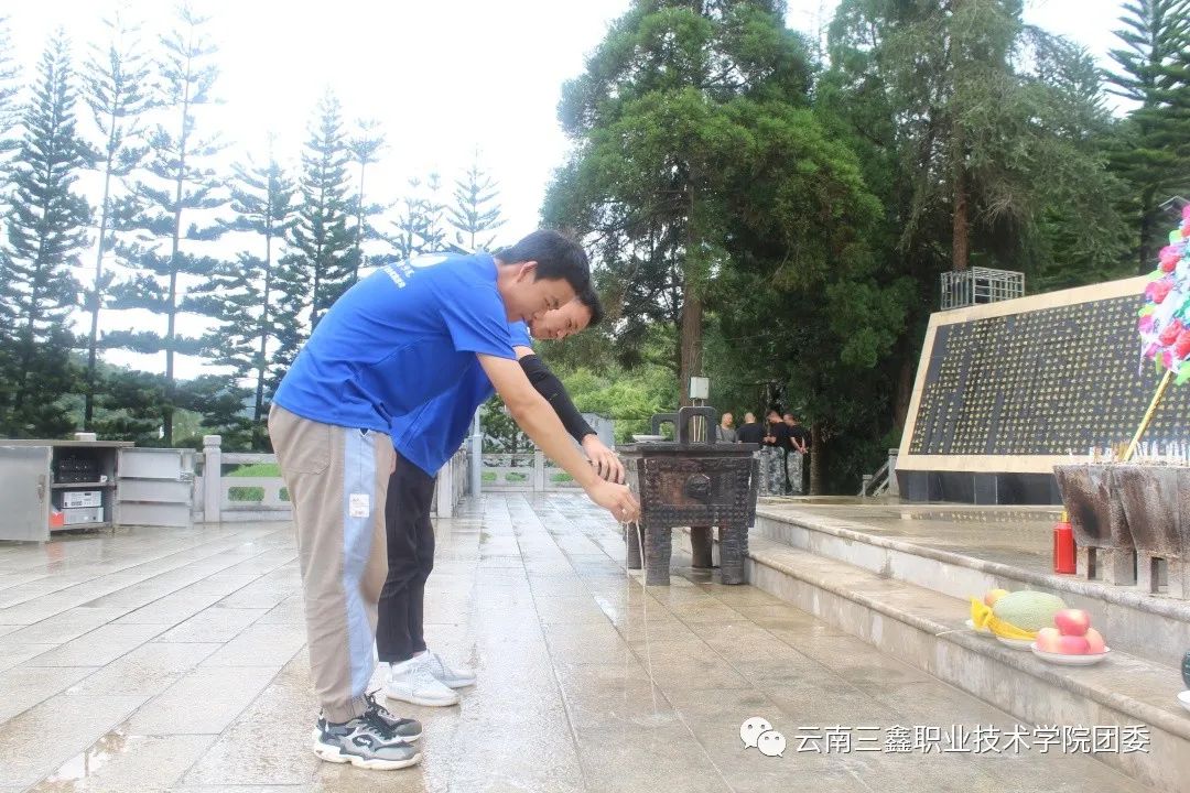 首先由學院團委書記王家琛老師和李慶妹老師帶領我們向烈士們默哀、獻煙,敬酒。