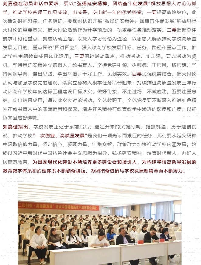 【弘揚延安精神、凝聚奮進力量推動學校高質量發展】——“弘揚延安精神、團結奮斗促發展”解放思想大討論動員大會
