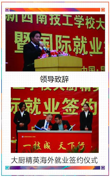 翰德國際總經理成仕彪、新西南技工學校董事長陳雙全、校長周代軍、就業辦主任李永強等簽約雙方代表,亮劍教育集團、食惑餐飲公司、飛陽餐飲公司、君悅酒店等單位相關領導,出席了本次簽約儀式,共同見證這一盛事的到來!