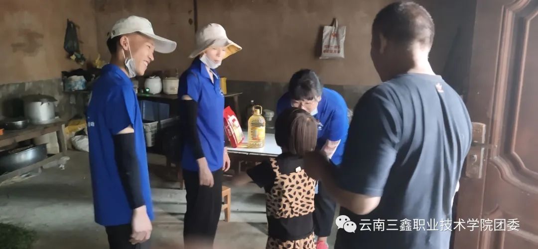 在村干部的帶領下部分志愿者代表和老師走訪慰問貧困戶和留守兒童,到村民家中走訪并送去慰問品。