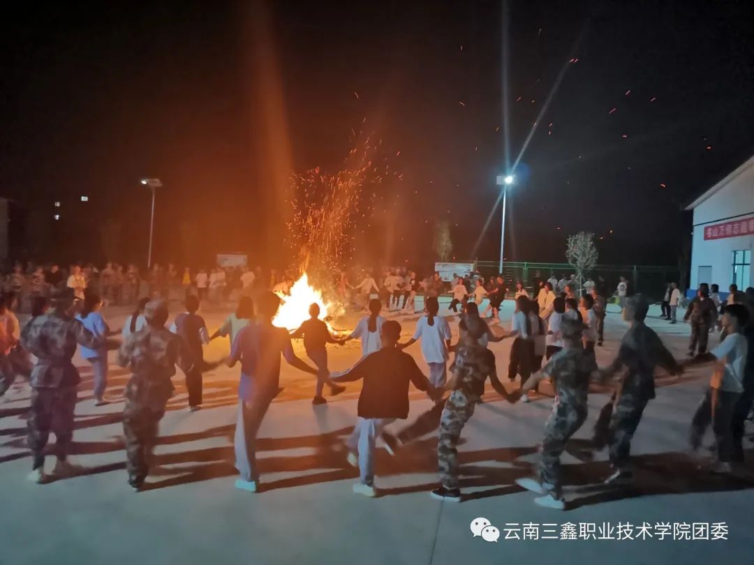 篝火點燃了在場師生的激情,學生干部帶著學弟學妹們跳《納西三部曲》和《7月火把節》,整個場面燈火相應又不失溫馨的色彩。不僅展示了學生的風采和特長,還極大地豐富了學生的課余生活,營造了一種百花齊放的校園氛圍。同時,這也讓新同學更好的融入三鑫這個大家庭。