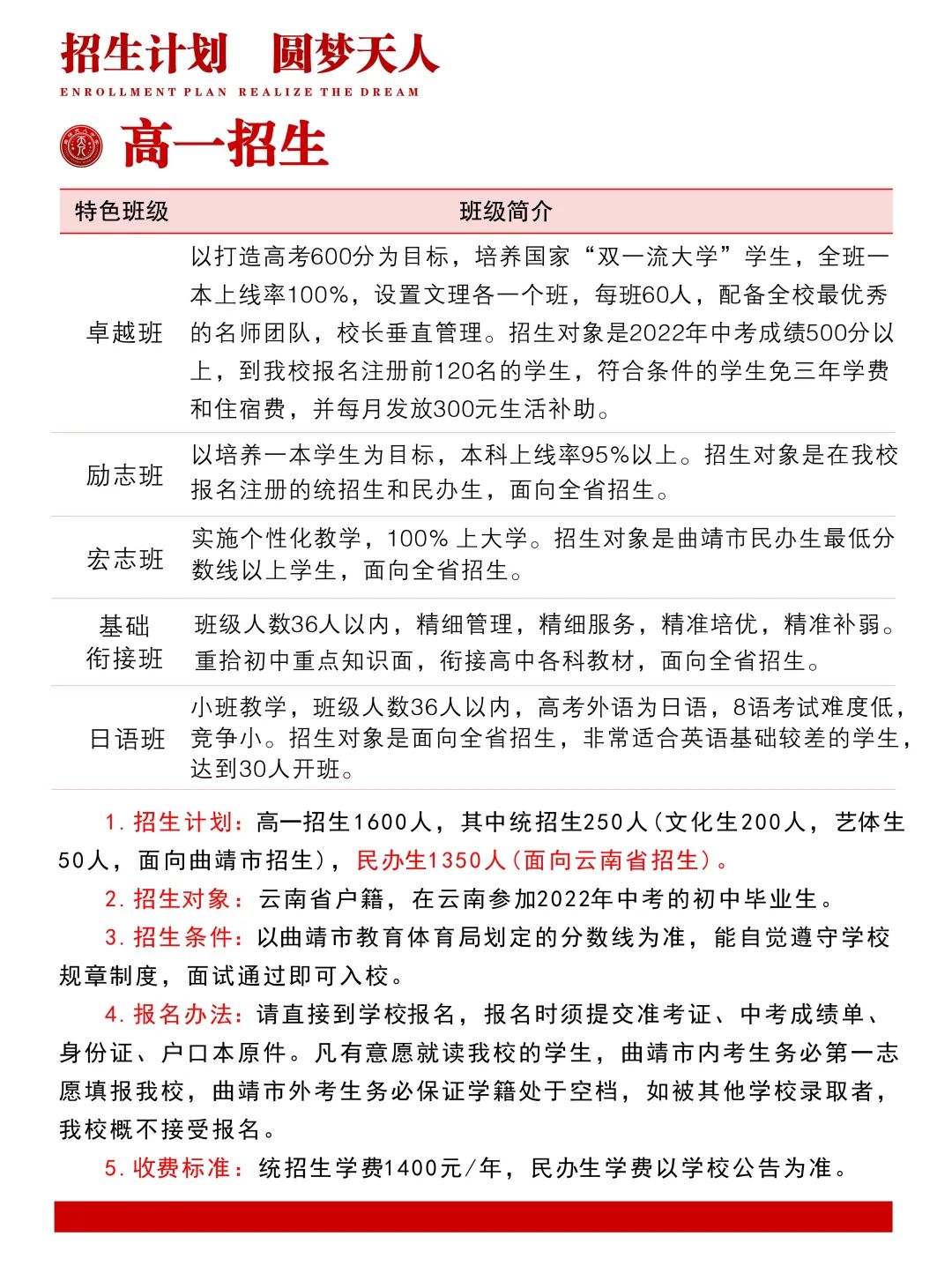 曲靖天人高級中學(2022年新高一,高三補習招生指南)